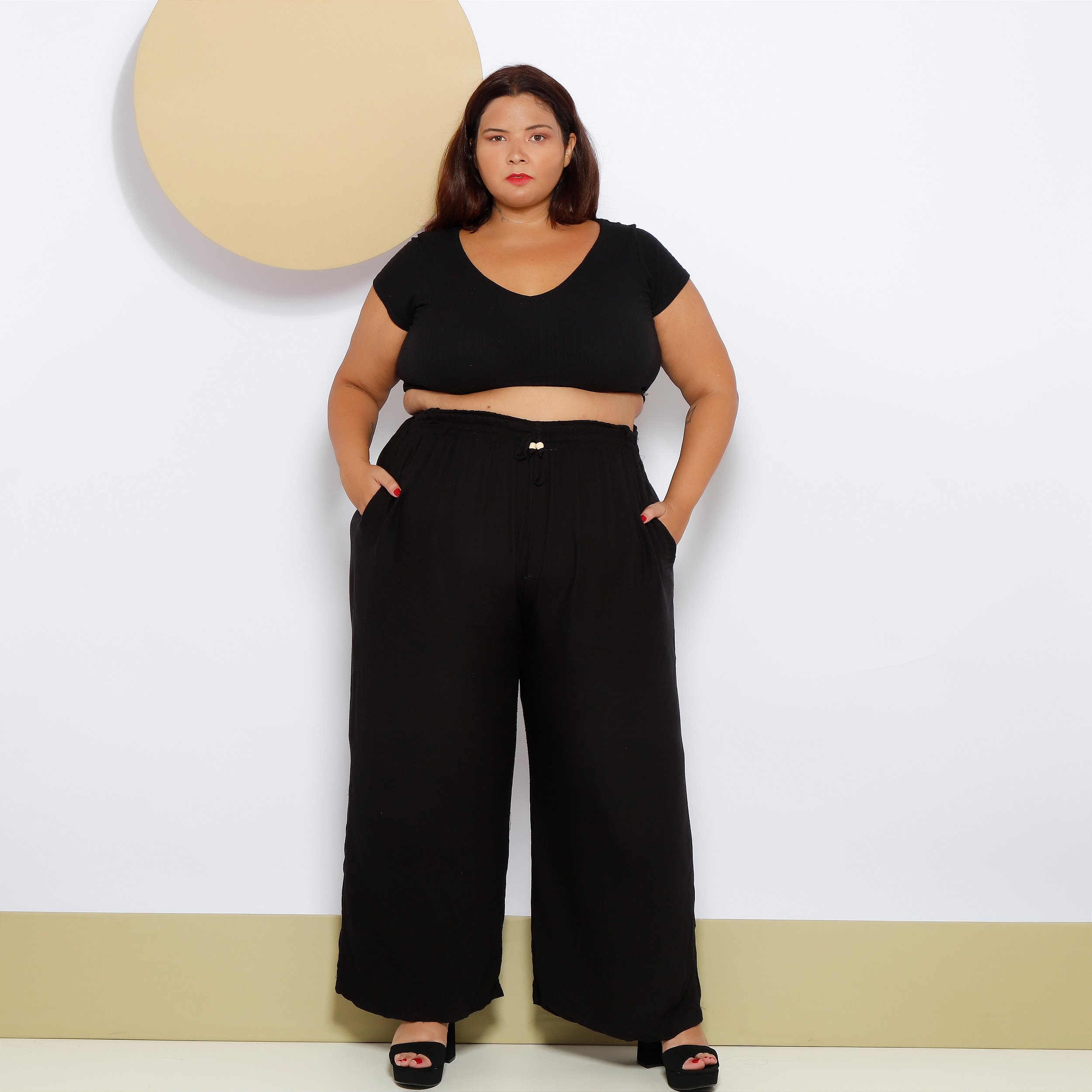 Calça Pantalona com dois bolsos de Viscose Sarjada Premium.